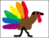 I made this turkey picture in school last Thanksgiving. We fingerpainted the turkey's body with chocolate pudding. Then Ms. Willis let us use real paint for the feathers. Cool, huh?